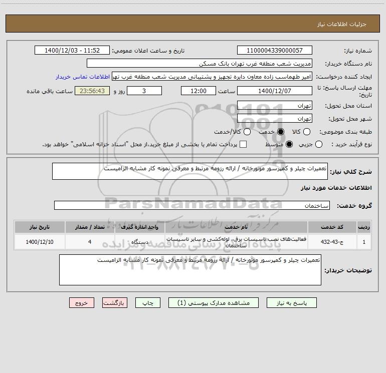 نام دستگاه خریدار:مدیریت شعب منطقه غرب تهران بانک مسکن