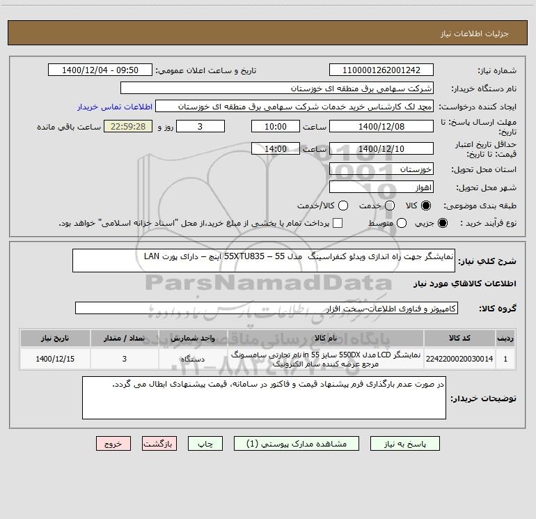 نام دستگاه خریدار:شرکت سهامی برق منطقه ای خوزستان