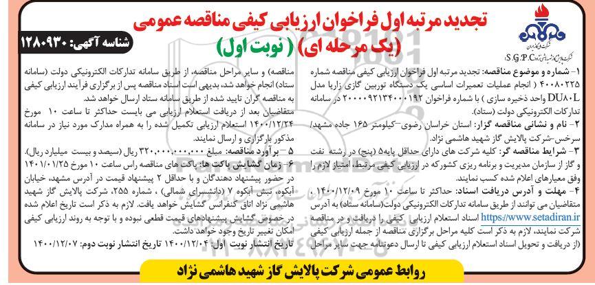 ای همزمان با ارزیابی کیفی فشرده مناقصه شماره 40080225 ( انجام تعمیرات