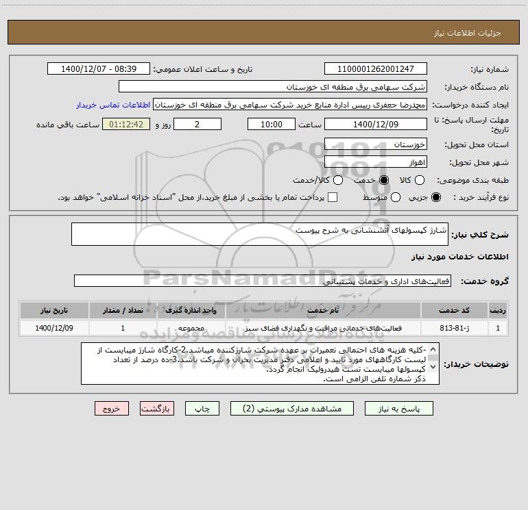 شرح کلی نیاز: شارژ کپسولهای آتشنشانی به شرح پیوست