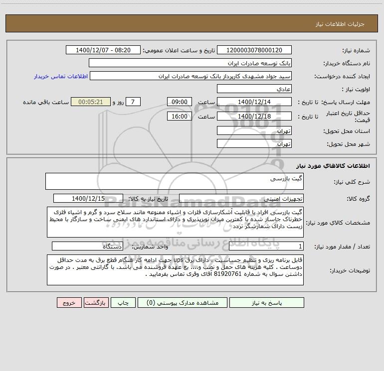 نام دستگاه خریدار:بانک توسعه صادرات ایران