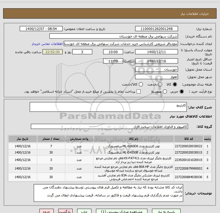 نام دستگاه خریدار:شرکت سهامی برق منطقه ای خوزستان