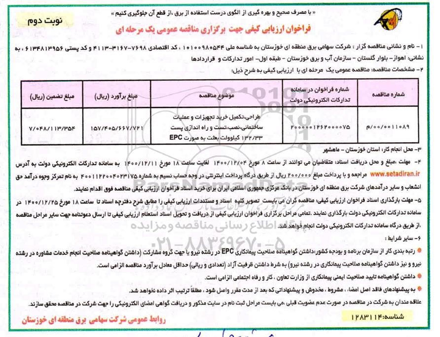 1. نام و نشانی مناقصه گزار: شرکت سهامی برق منطقه ای خوزستان به شناسه ملی