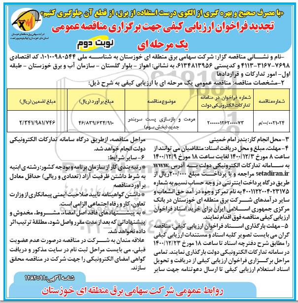 1. نام و نشانی مناقصه گزار: شرکت سهامی برق منطقه ای خوزستان به شناسه ملی