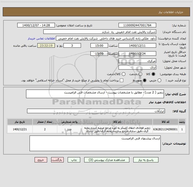 شرح کلی نیاز: زنجیر ( 2 عدد) - مطابق با مشخصات پیوست - ارسال مشخصات فنی الزامیست