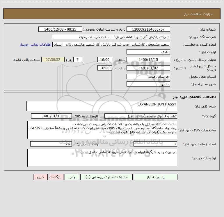 شرح کلی نیاز: EXPANSION JONT ASSY