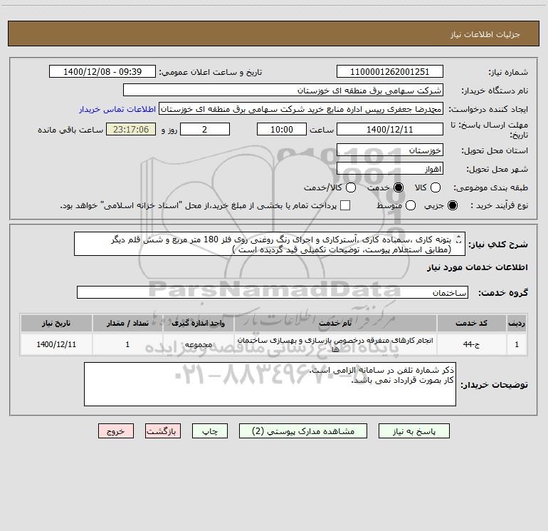 نام دستگاه خریدار:شرکت سهامی برق منطقه ای خوزستان
