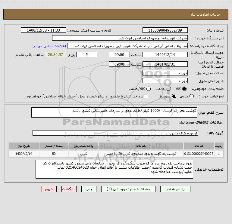 نام دستگاه خریدار:شرکت هواپیمایی جمهوری اسلامی ایران هما