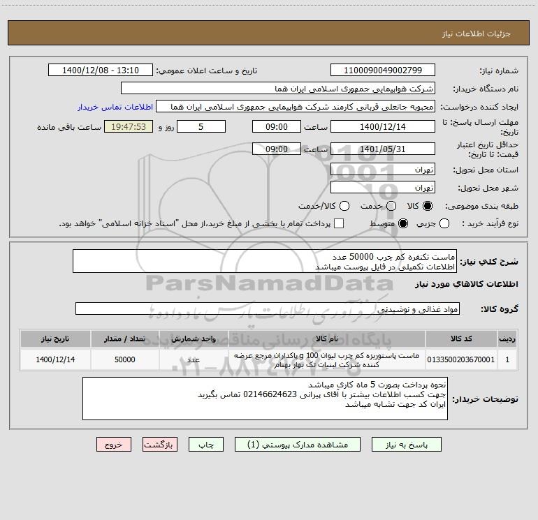 شرح کلی نیاز: ماست تکنفره کم چرب 50000 عدد