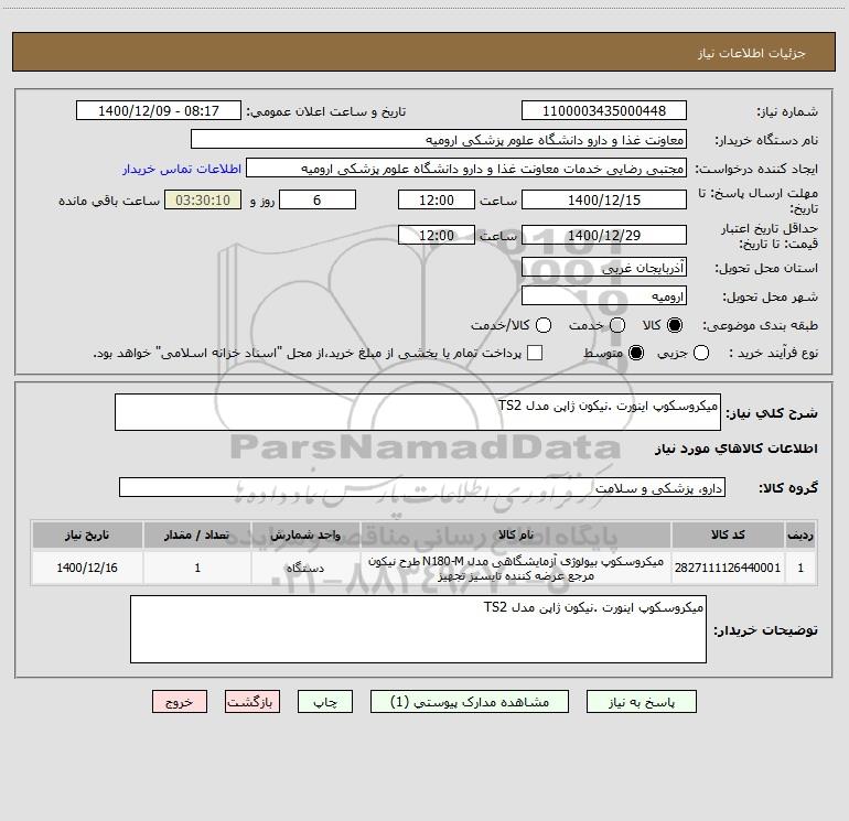 نام دستگاه خریدار:معاونت غذا و دارو دانشگاه علوم پزشکی ارومیه