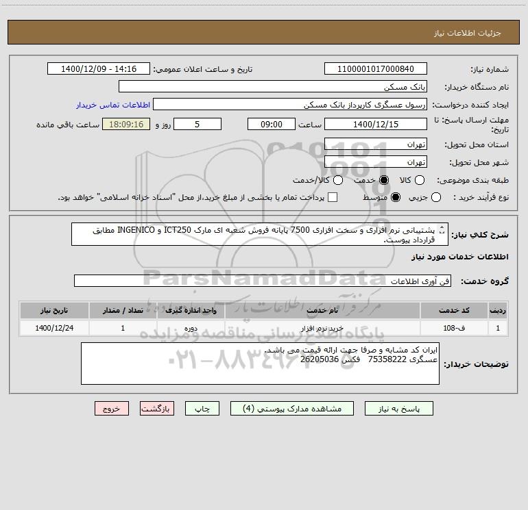 شرح کلی نیاز: پشتیبانی نرم افزاری و سخت افزاری 7500 پایانه فروش شعبه ای مارک ICT250 و INGENICO مطابق قرارداد پیوست.