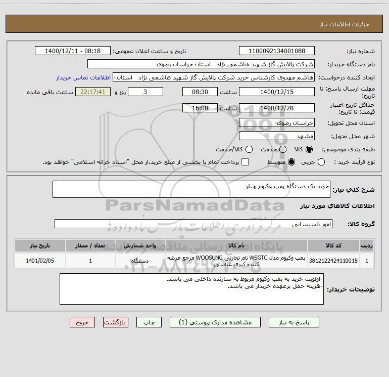 نام دستگاه خریدار:شرکت پالایش گاز شهید هاشمی نژاد استان خراسان رضوی