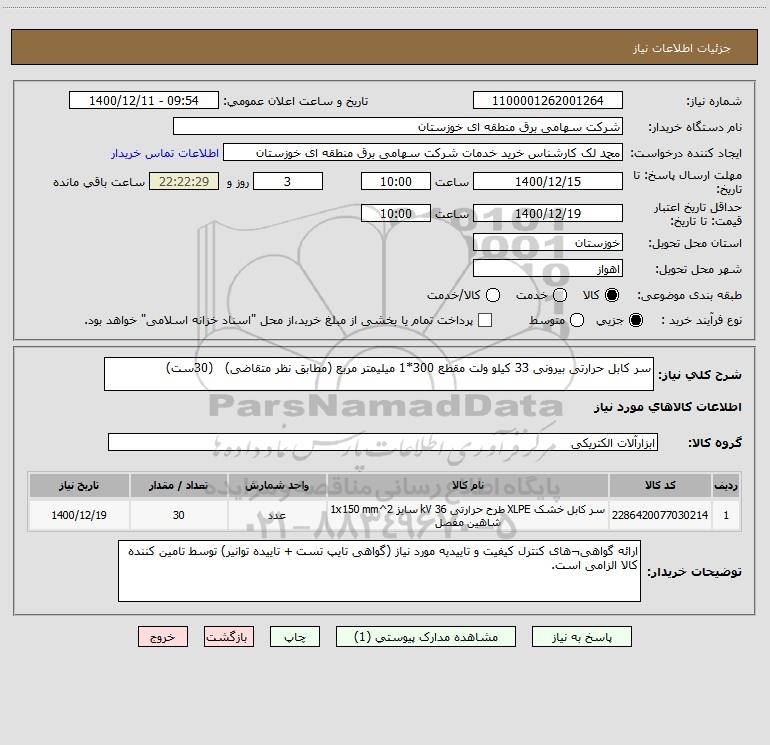 نام دستگاه خریدار:شرکت سهامی برق منطقه ای خوزستان