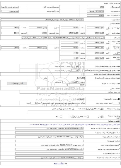 شماره مال2100001325000171نوع برگزاری مزایده مزایده عمومی