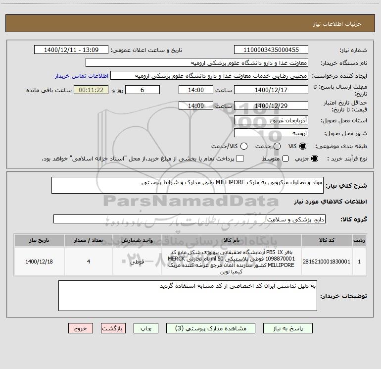 نام دستگاه خریدار:معاونت غذا و دارو دانشگاه علوم پزشکی ارومیه