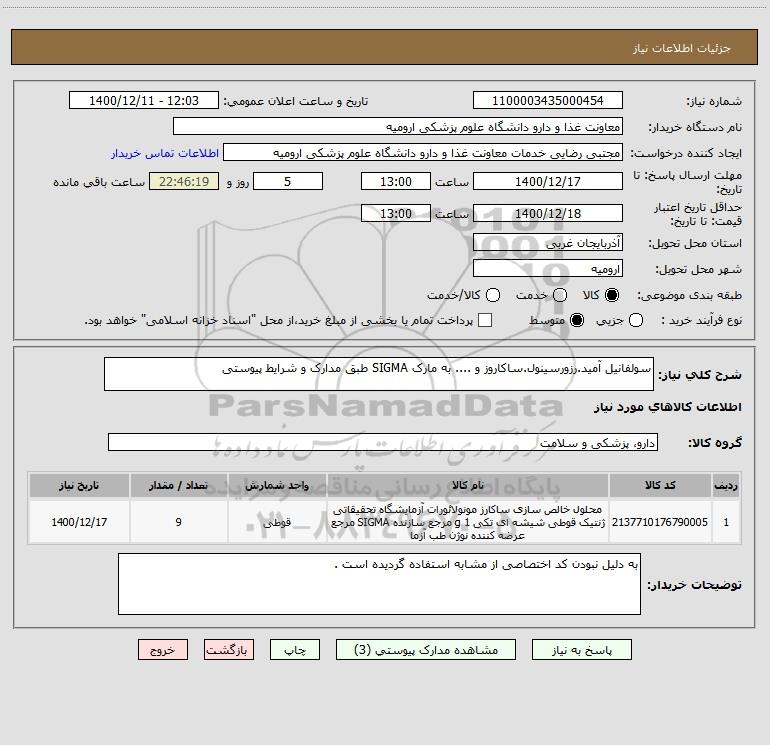 نام دستگاه خریدار:معاونت غذا و دارو دانشگاه علوم پزشکی ارومیه