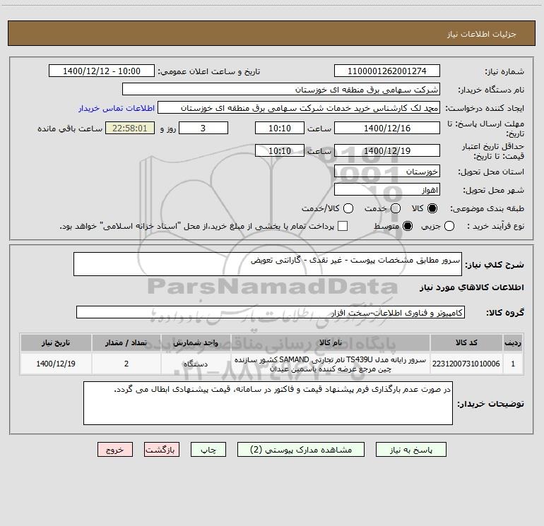 شرح کلی نیاز: سرور مطابق مشخصات پیوست - غیر نقدی - گارانتی تعویض