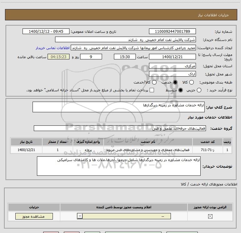 نام دستگاه خریدار:شرکت پالایش نفت امام خمینی ره شازند