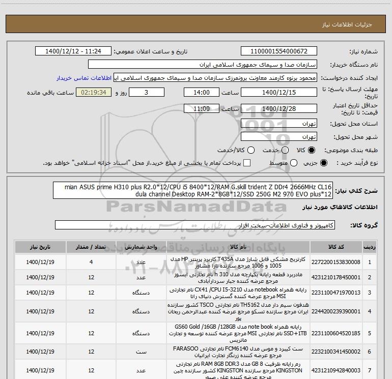 نام دستگاه خریدار:سازمان صدا و سیمای جمهوری اسلامی ایران