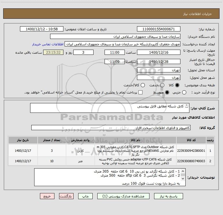 نام دستگاه خریدار:سازمان صدا و سیمای جمهوری اسلامی ایران