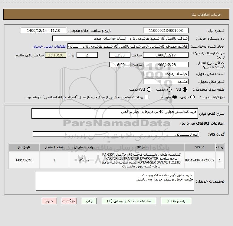 نام دستگاه خریدار:شرکت پالایش گاز شهید هاشمی نژاد استان خراسان رضوی