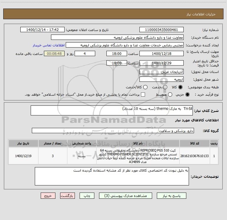 شرح کلی نیاز: Tri-Sil به مارک thermo (سه بسته 10 عددی)