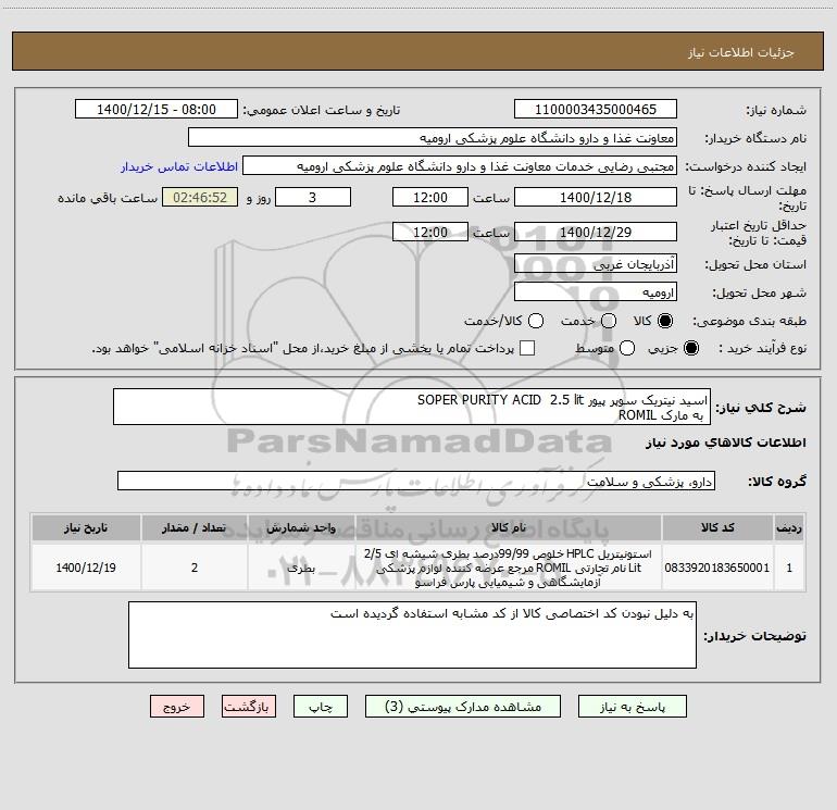 نام دستگاه خریدار:معاونت غذا و دارو دانشگاه علوم پزشکی ارومیه