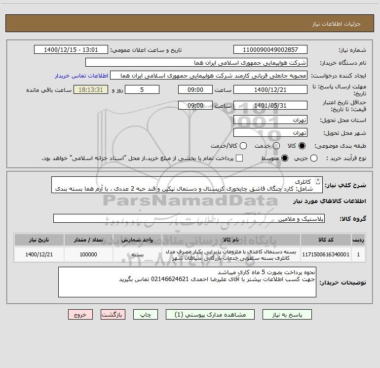 نام دستگاه خریدار:شرکت هواپیمایی جمهوری اسلامی ایران هما
