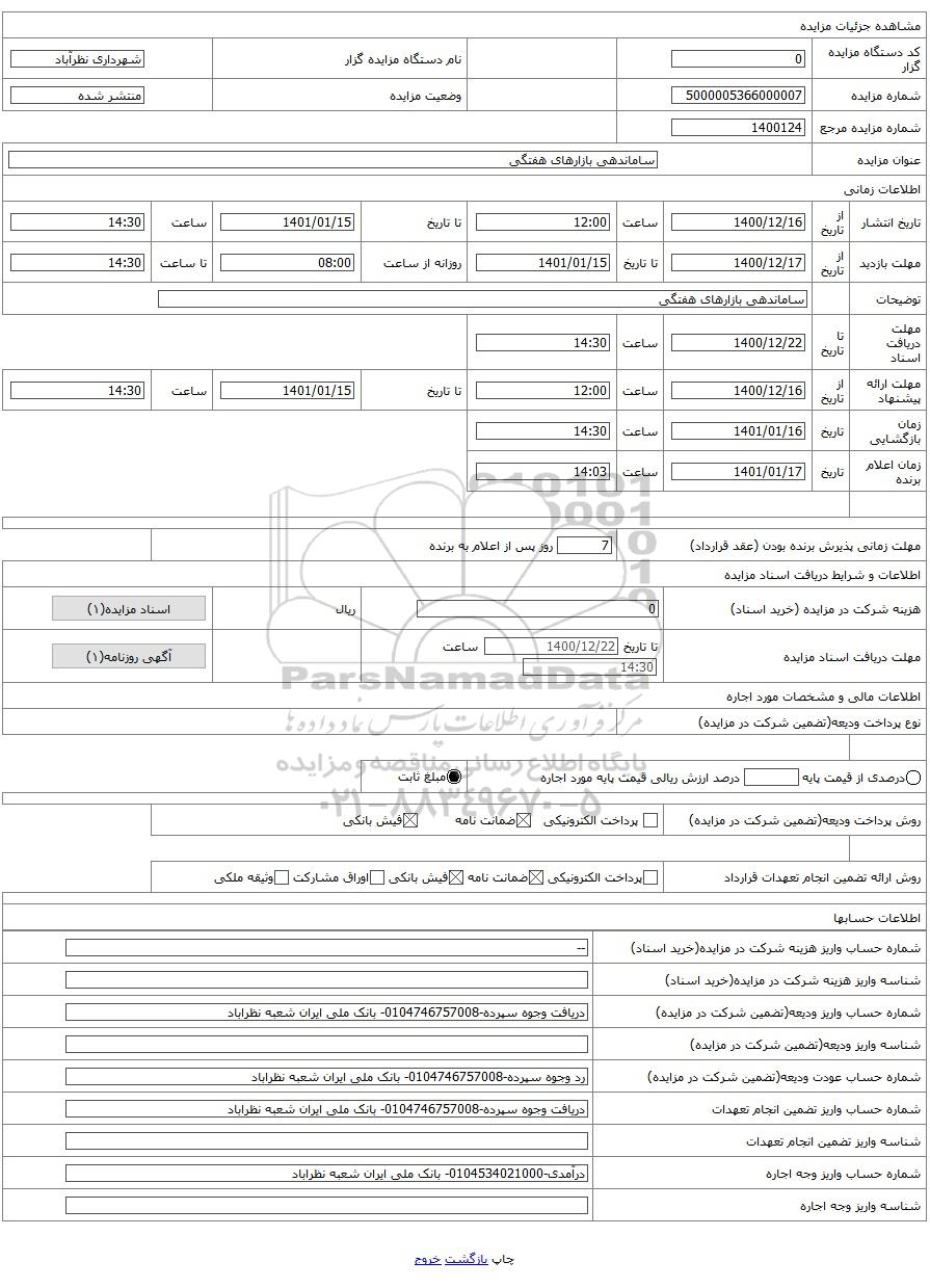 | عنوان مزایده | ساماندهی بازارهای هفتگی | |||