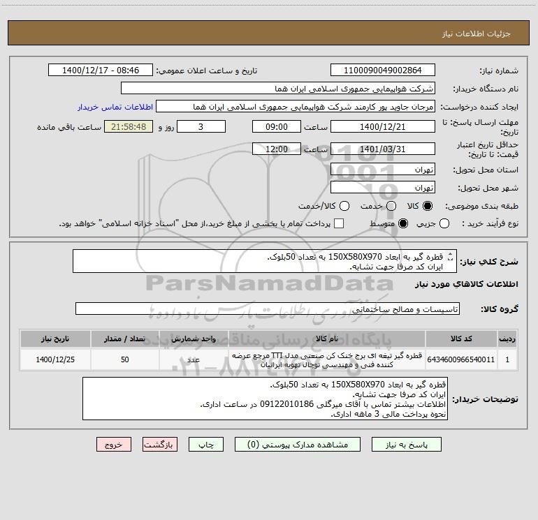 نام دستگاه خریدار:شرکت هواپیمایی جمهوری اسلامی ایران هما