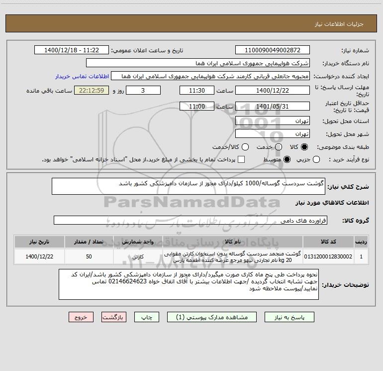 نام دستگاه خریدار:شرکت هواپیمایی جمهوری اسلامی ایران هما