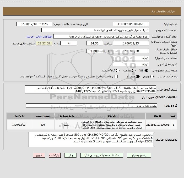 نام دستگاه خریدار:شرکت هواپیمایی جمهوری اسلامی ایران هما