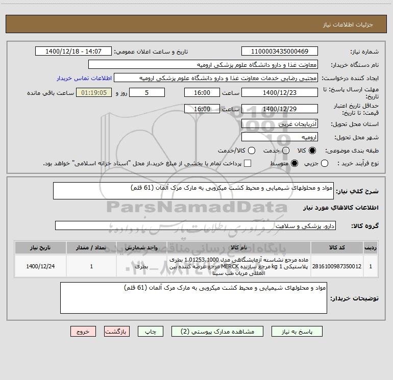 نام دستگاه خریدار:معاونت غذا و دارو دانشگاه علوم پزشکی ارومیه