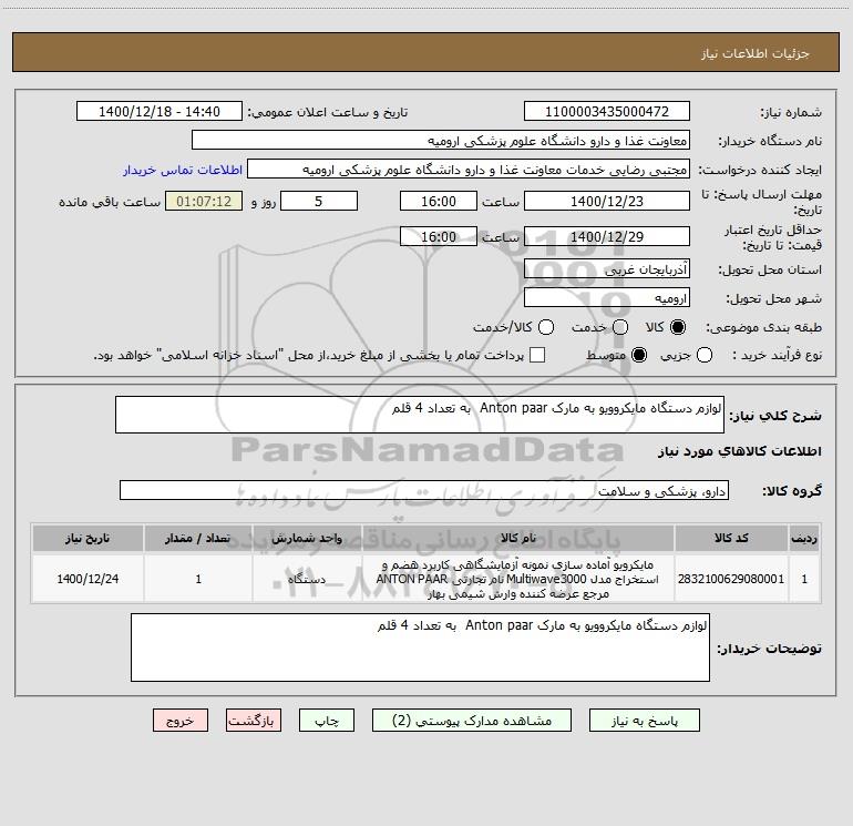 نام دستگاه خریدار:معاونت غذا و دارو دانشگاه علوم پزشکی ارومیه