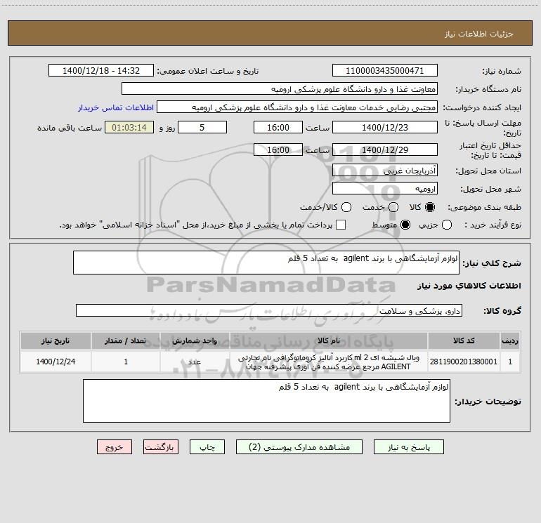 شرح کلی نیاز: لوازم آزمایشگاهی با برند agilent به تعداد 5 قلم