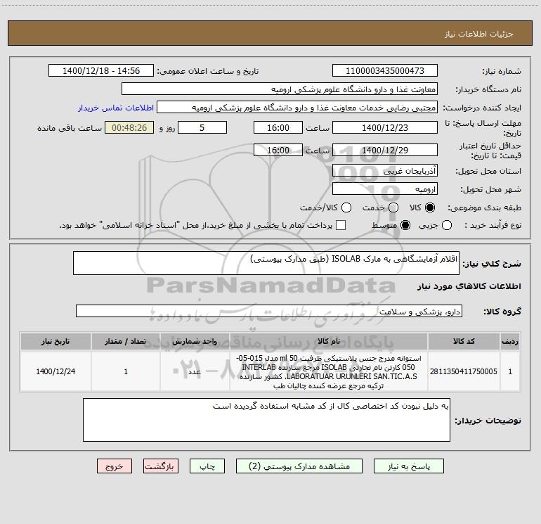 نام دستگاه خریدار:معاونت غذا و دارو دانشگاه علوم پزشکی ارومیه