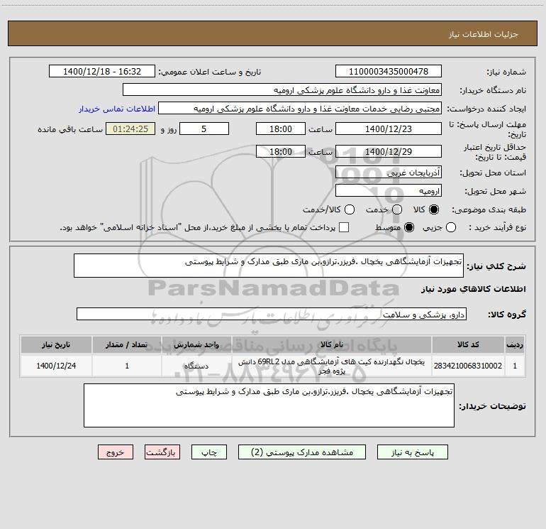 نام دستگاه خریدار:معاونت غذا و دارو دانشگاه علوم پزشکی ارومیه