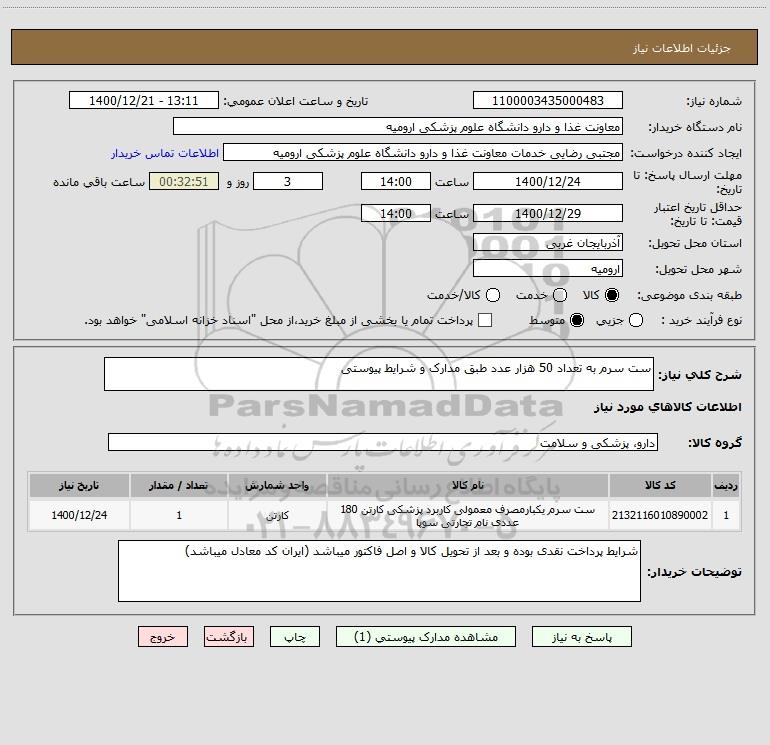 استعلام ست سرم به تعداد 50 هزار عدد طبق مدارک و شرایط پیوستی, استعلام ست سرم به تعداد 50 هزار عدد طبق مدارک و شرایط پیوستی