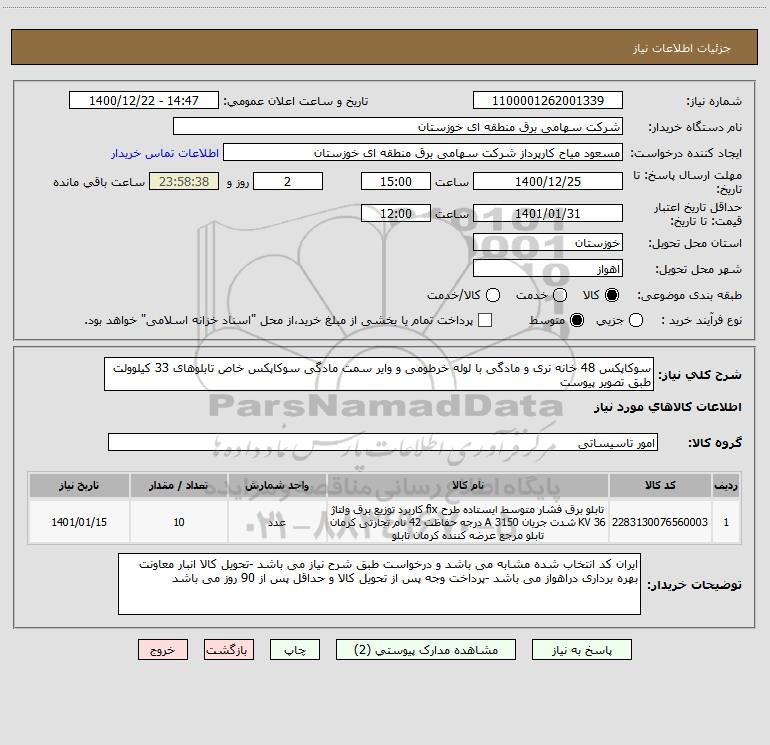 شرح کلی نیاز: سوکاپکس 48 خانه نری و مادگی با لوله خرطومی و وایر سمت مادگی سوکاپکس خاص تابلوهای 33 کیلوولت طبق تصویر پیوست