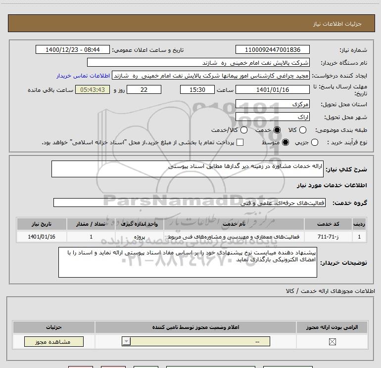 نام دستگاه خریدار:شرکت پالایش نفت امام خمینی ره شازند