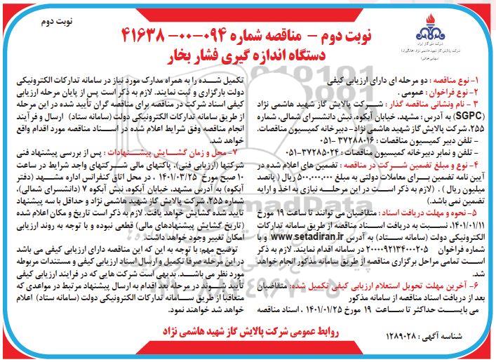 مناقصه شماره 094- 00- 41638 نوبت دوم