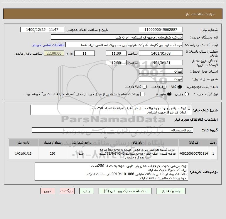 نام دستگاه خریدار:شرکت هواپیمایی جمهوری اسلامی ایران هما
