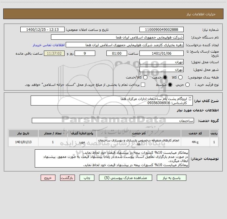 شرح کلی نیاز: ایزوگام پشت بام ساختمان ادارات مرکزی هما