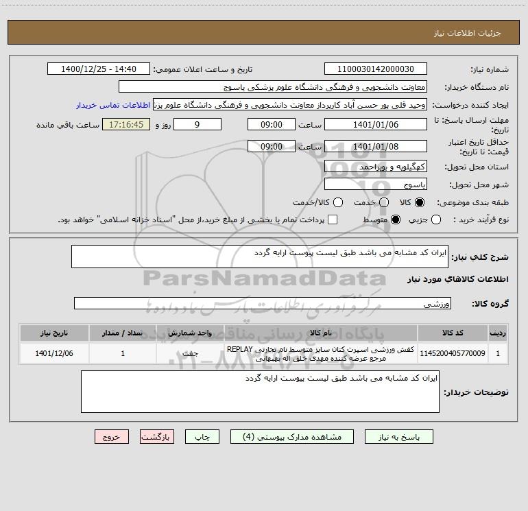 شرح کلی نیاز: ایران کد مشابه می باشد طبق لیست پیوست ارایه گردد