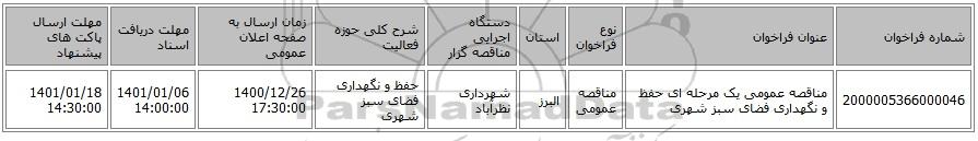 مناقصه، مناقصه عمومی یک مرحله ای حفظ و نگهداری فضای سبز شهری , مناقصه عمومی یک مرحله ای حفظ و نگهداری فضای سبز شهری