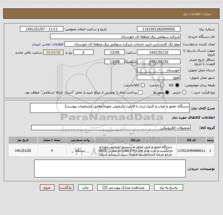 نام دستگاه خریدار:شرکت سهامی برق منطقه ای خوزستان
