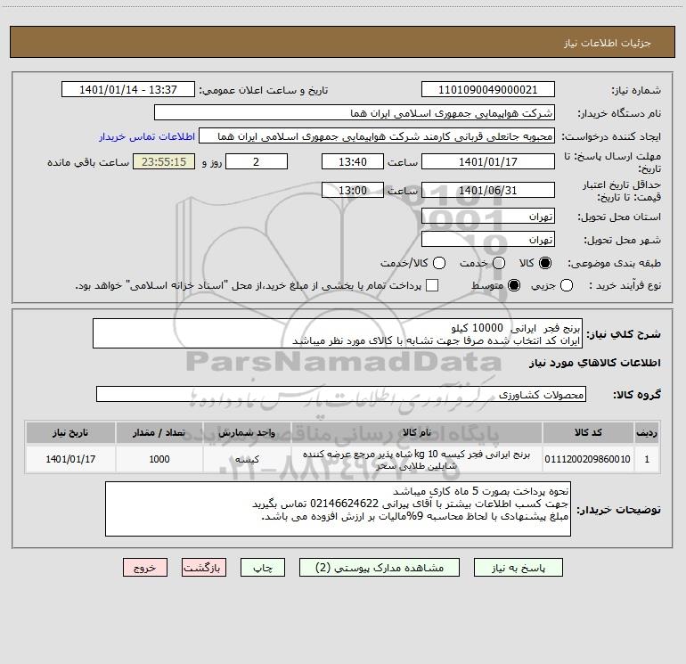نام دستگاه خریدار:شرکت هواپیمایی جمهوری اسلامی ایران هما