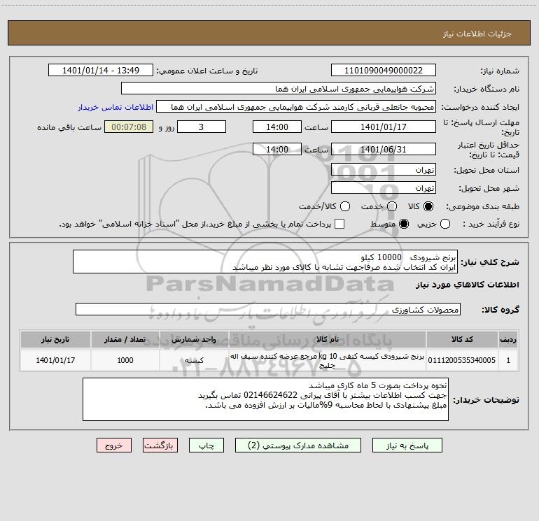 نام دستگاه خریدار:شرکت هواپیمایی جمهوری اسلامی ایران هما