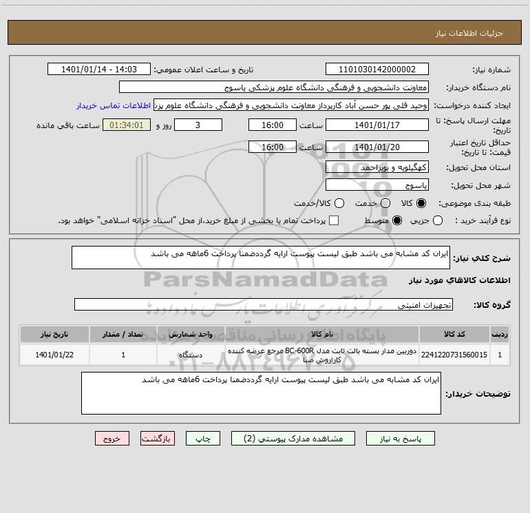 نام دستگاه خریدار:معاونت دانشجویی و فرهنگی دانشگاه علوم پزشکی یاسوج