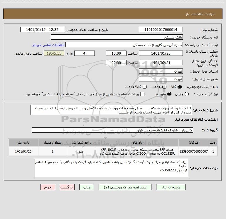 شرح کلی نیاز: قرارداد خرید تجهیزات شبکه ... طبق مشخصات پیوست شده ، تکمیل و ارسال پیش نویس قرارداد پیوست شده تا قبل از اتمام مهلت ارسال پاسخ الزامیست